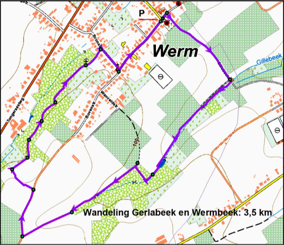 De wandeling doorheen de gedieden De Gerlabeek en De Wermbeek is zo'n 3,5 km. Het beginpunt van deze wandeling bevindt zich aan de parking van de Sint-Domitianus kerk te werm, aan de Gillebeekstraat in Bilzen-Hoeselt. Deze route begeleidt de wandelaar door beekvallei en agrarish gebied. Als je in de lente doorheen dit prachtige gebied wandelt, kan je genieten van de bloesems aan de fruitbomen en de fleurige maretakken in de toppen van de populieren.